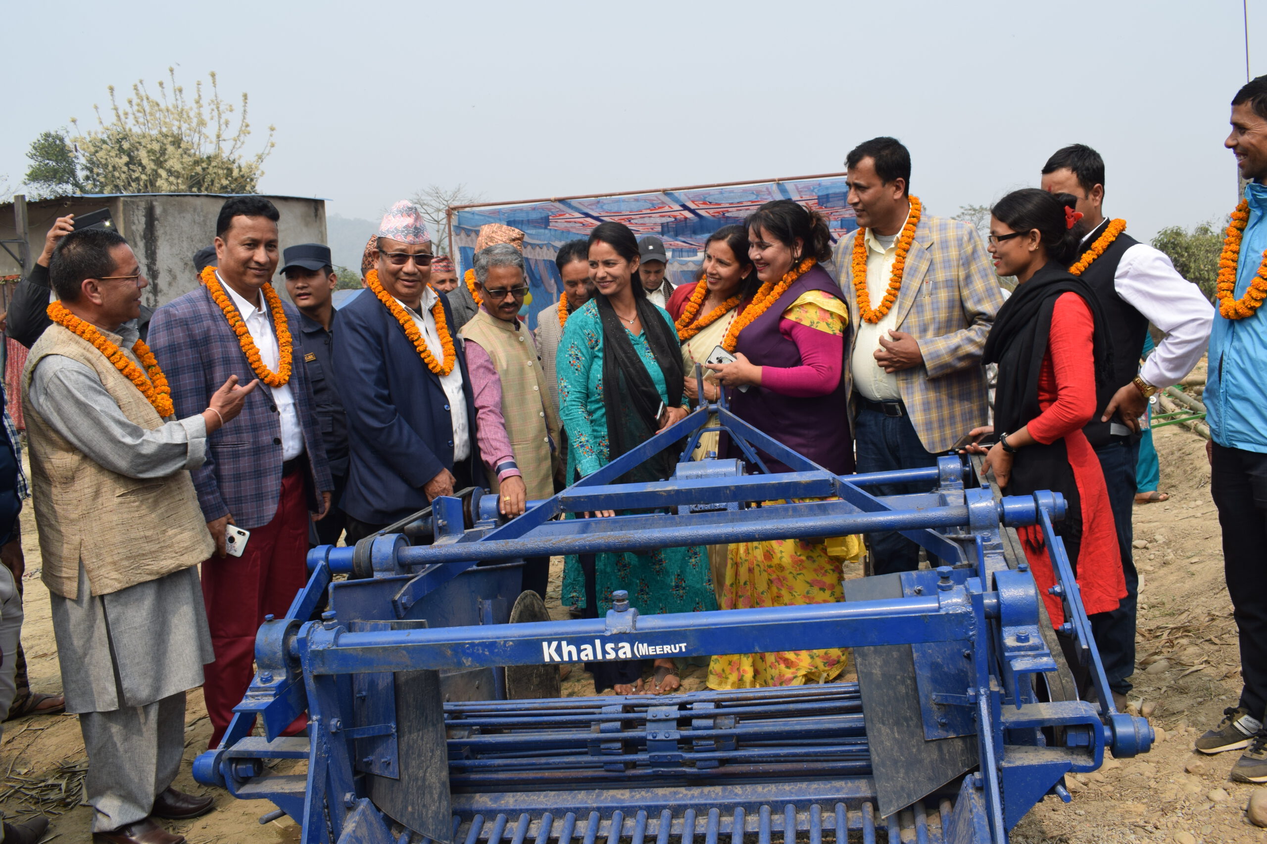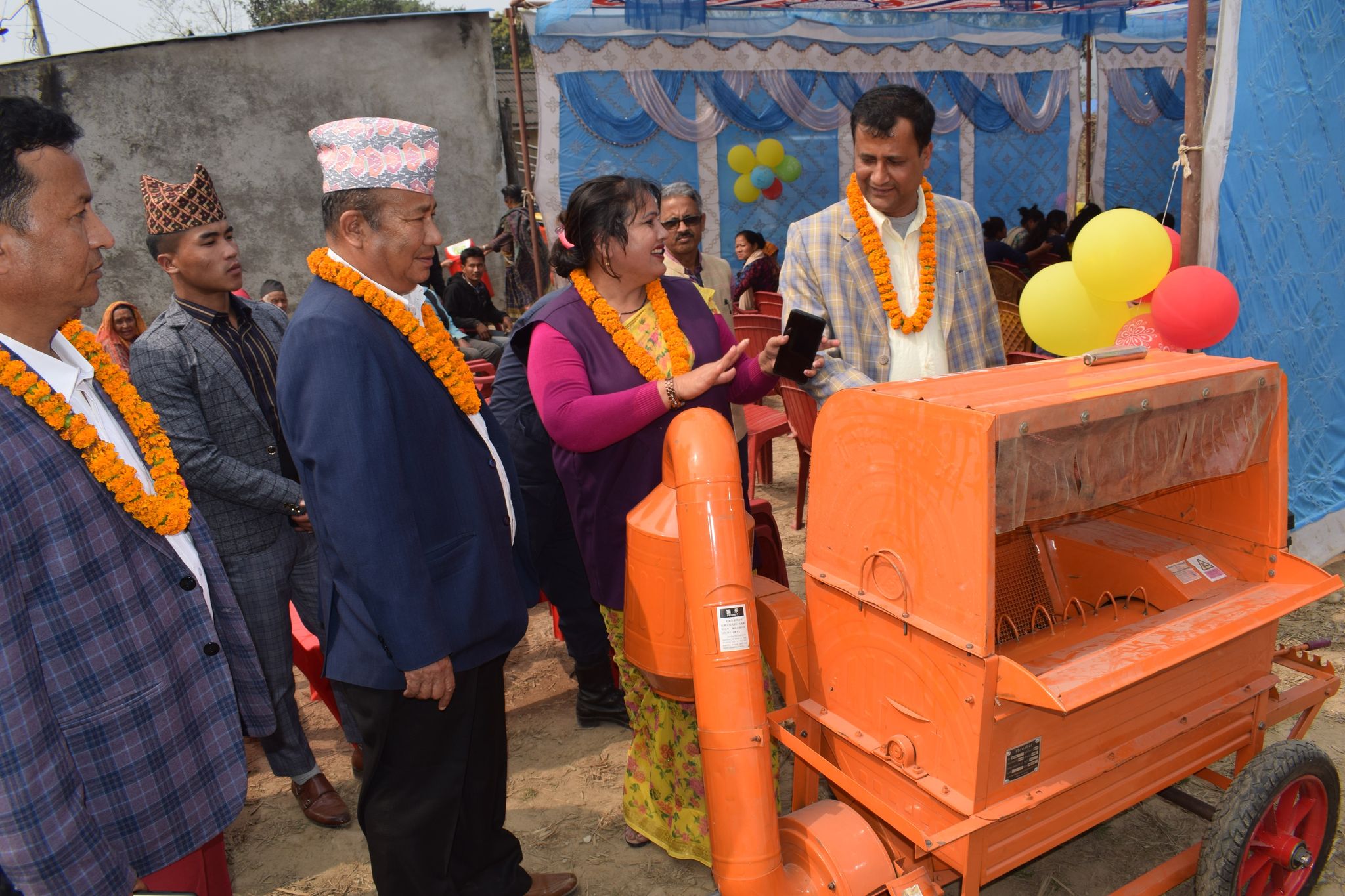 जसअन्तरगत आज मात्रै वडा नम्बर ४, ७ र ९ लाई २५ लाख रुपैया बराबरको च्याउको बिउ उत्पादन गर्ने मेसिन, च्याउको लागि चाहिने पराल पकाउने मेसिन, आलु खन्ने, तरकारी गोड्ने, धान चुट्ने मेसिन र कुटान पिसान मेसिन हस्तान्तरण गरिएको हो । कृषि मन्त्री लामाले समृद्धी टोल विकास संस्थाका अध्यक्ष पर्शुराम गौतमलाइ मेसिन हस्तान्तरण गर्नु भएको हो ।
