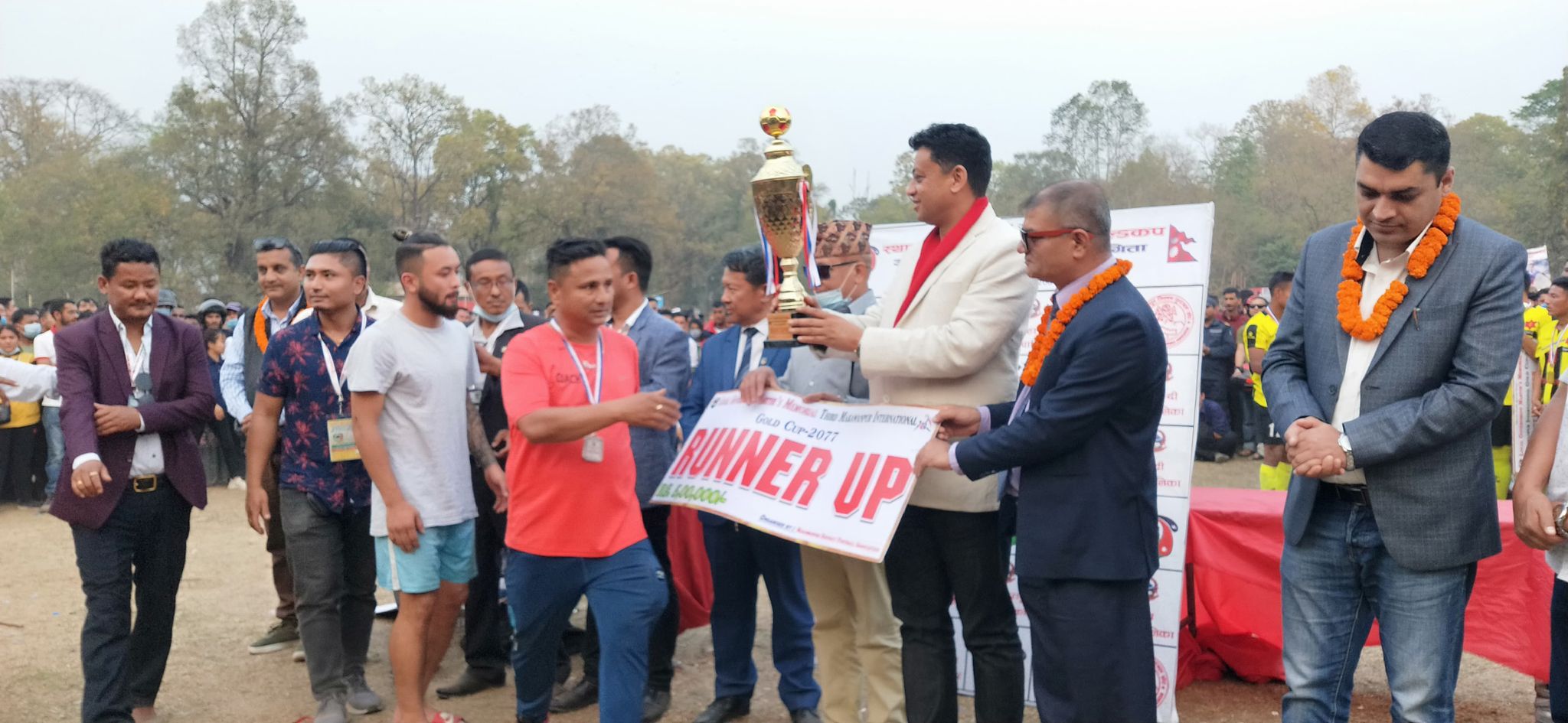 च्याम्पियन बनेसंगै आर्मीले ट्रफि, नगद १० लाख रुपैया सहित मेडल प्राप्त गरेको छ भने उपविजेता मकवानपुर ११ ले ट्रफी, नगद ५ लाख रुपैया प्राप्त गरेको छ । आजको खेलको म्यान अफ द म्याच आर्मीका गोलकर्ता बुढाथोकी भए । उनले नगद १० हजार पुरस्कार प्राप्त गरेका छन् ।