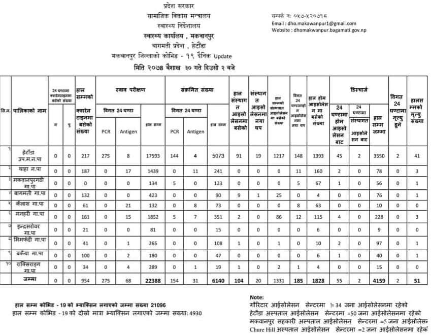 मकवानपुरमा बिहिबार थप २ कोरोना संक्रमितको मृत्यु , १८५ जना संक्रमित थपिए