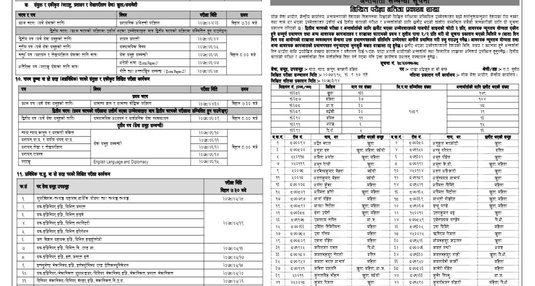 आयोगले ११ वटा विज्ञापनमा विविध कारणले रोकिएका परीक्षा, अन्तर्वार्ता, नतिजा प्रकाशन लगायतको कार्यतालिका सार्वजनिक गरेको छ । साभारः उज्यालो अनलाइन ।