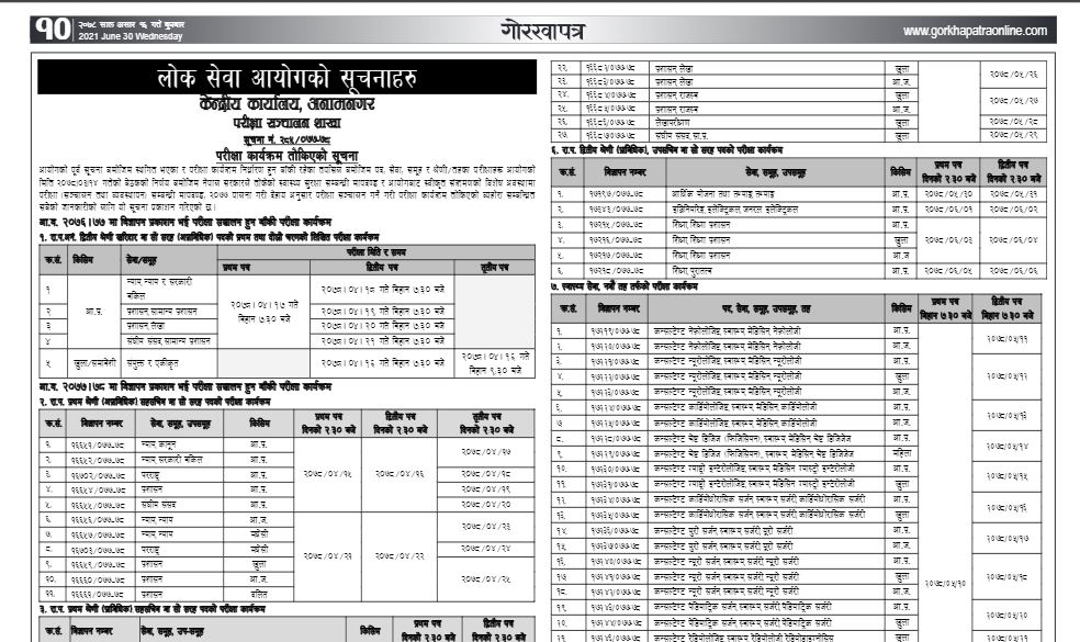 लोकसेवाको रोकिएको परीक्षा साउन १५ गतेदेखि (तालिकासहित)
