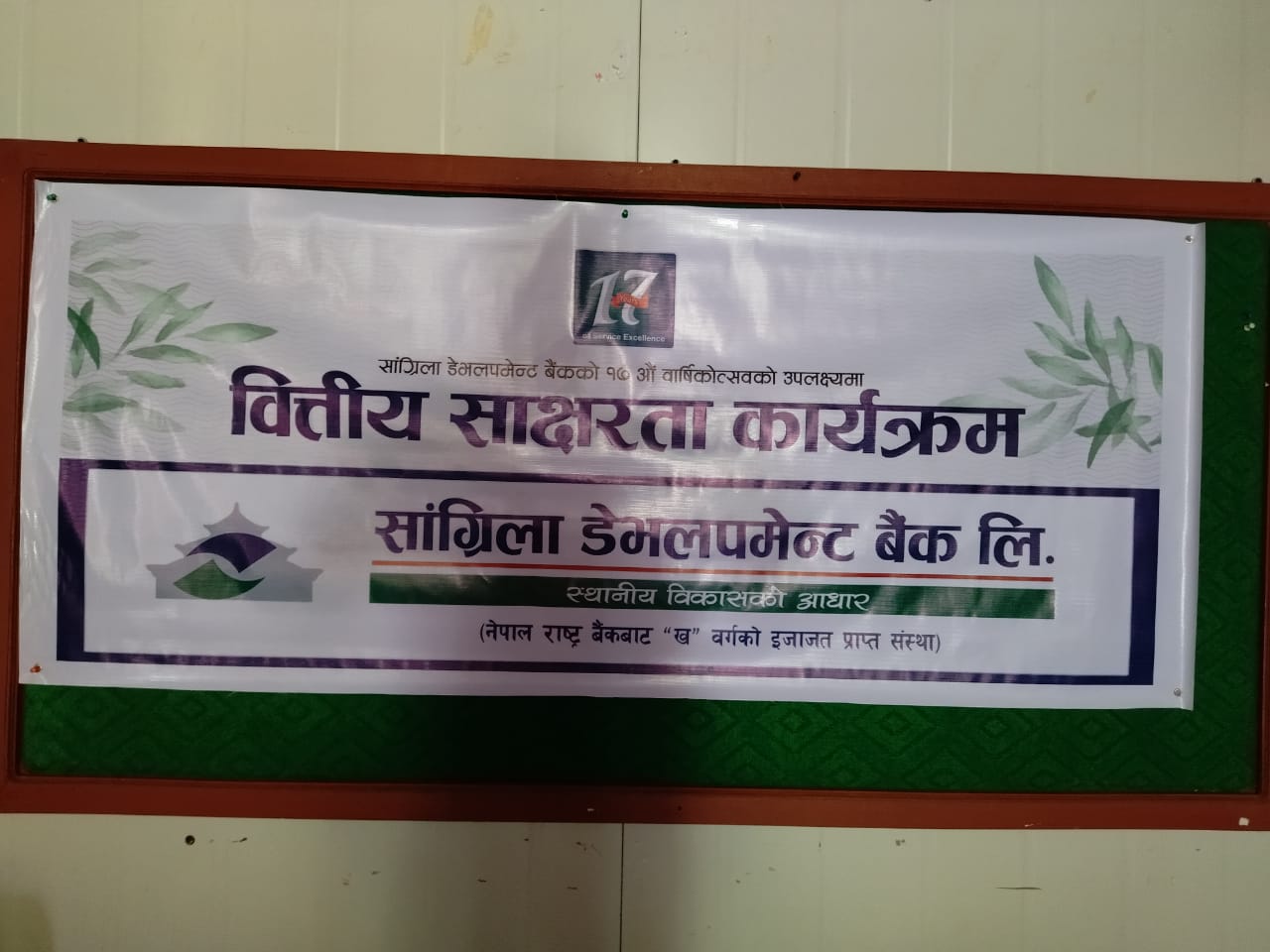 सांग्रिला विकास बैंक रजैया शाखाले बैंकको १७ वार्षिकोत्सवको अवसर पारेर आज वित्तीय साक्षरता कार्यक्रम सम्पन्न गरेको छ ।