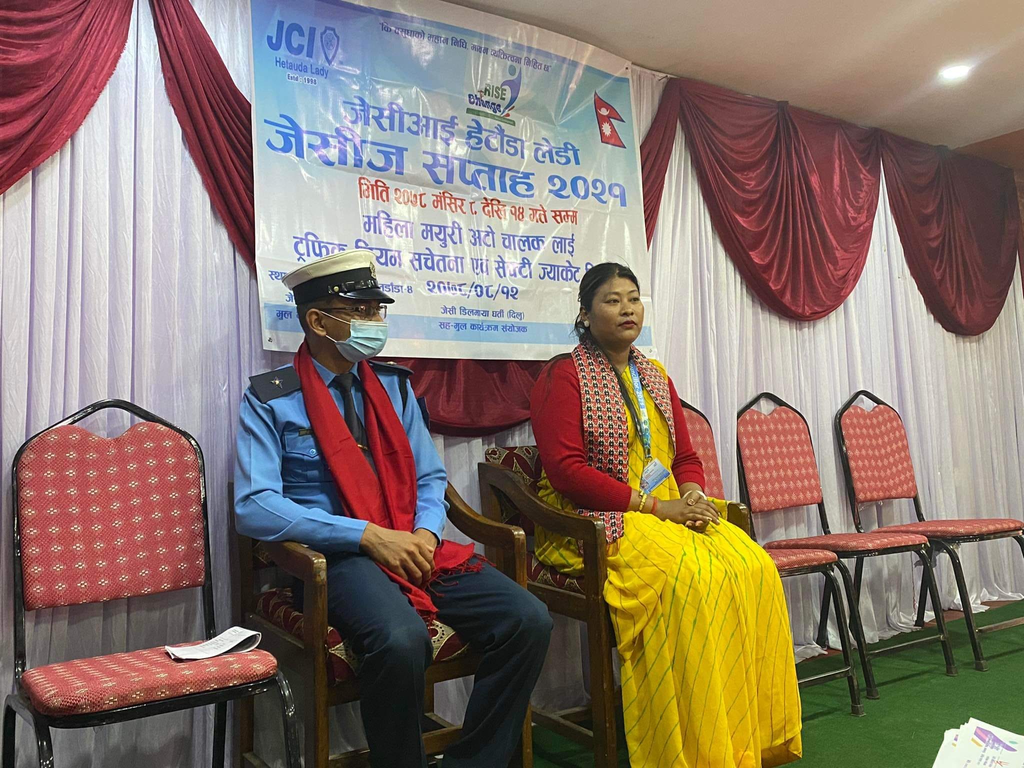 त्यस्तै जेसीज सप्ताह अन्तर्गतको पाँचौं दिनको दोस्रो कार्यक्रम अन्तर्गत हेटौंडाका महिला अटो तथा मयूरी चालकलाई ट्राफिक नियम सम्बन्धि सचेतना प्रदान गरिएको छ । प्रहरी सहायक निरीक्षक दयाराम गौतमले महिला चालकलाई ट्राफिक सचेतना सम्बन्धि प्रशिक्षण दिनुभएको होे ।