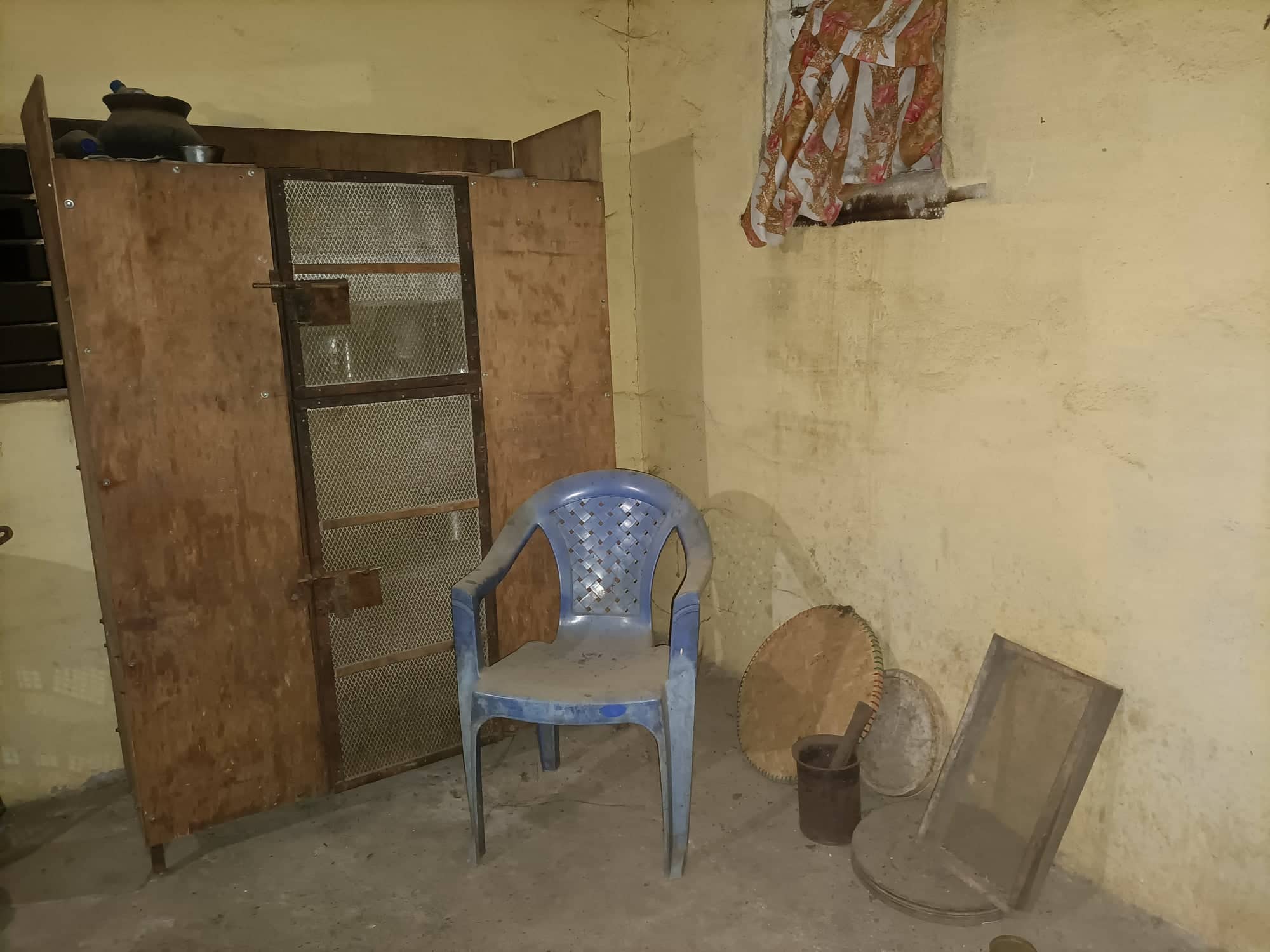 आश्रमको भान्साकोठामा निर्माणसामग्री राखिएको छ । र, भान्साकोठाबाहिर तीनवटा ढुङ्गा राखेर चुलो बनाएर खाना बनाउने गरेको २३ वर्षदेखि आश्रम बसिरहेका ७५ वर्षीय रामेश्वर घलेले बताए ।
