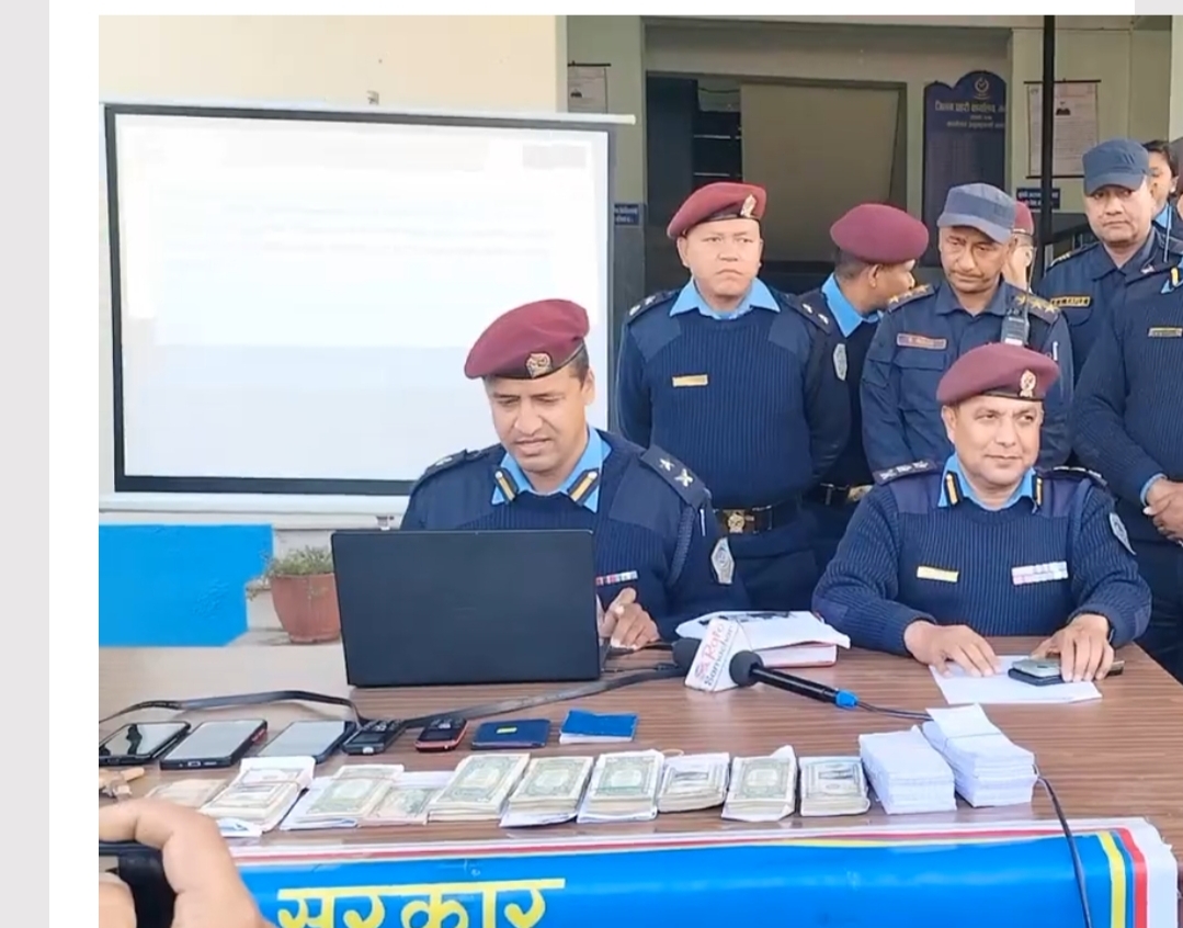 हेटौंडा -१७ सालकपार्कमा डलर देखाई ठगी गरेको आरोपमा बुधबार प्रक्राउ गरेका ४ जनालाई बिहीबार प्रहरीले पत्रकार सम्मेलन गर्दै सार्वजनिक गरेको हो । एक जना अझै फरार रहेको जिल्ला प्रहरी कार्यालय मकवानपुरका प्रहरी उपरिक्षक बामदेव गौतमले बताउनुभयो । प्रहरीले उनीहरुको साथबाट ३ वटा मोटरसाइकल, १ हजार ७ सय ४१ अमेरिकी डलर र ६ हजार २ सय १० नेपाली रुपैयाँ, नक्कली नोट ८ बन्डल, गुलेली ३ थान, मोबाइल ५ थान र मोटरसाइकलको बिलबुक दुइ थान बरामद गरिएको गौतमले जानकारी दिनुभयो ।