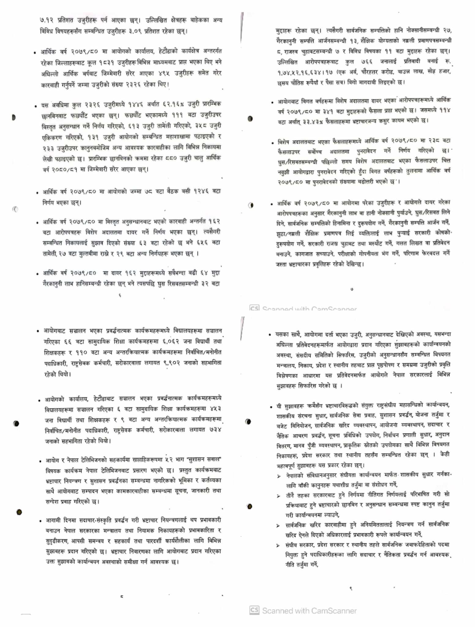 साथै उजुरीहरुको अनुसन्धानका क्रममा आवश्यक्ता अनुसार सम्बन्धित निकायहरुमा सुझाव लेखी पठाउने, मुल्तवीमा राख्ने र भ्रष्टाचार भएको प्रमाण नपुगेका उजुरी तामेलीमा राख्ने कार्य भएको जानकारी दिनुभयो ।