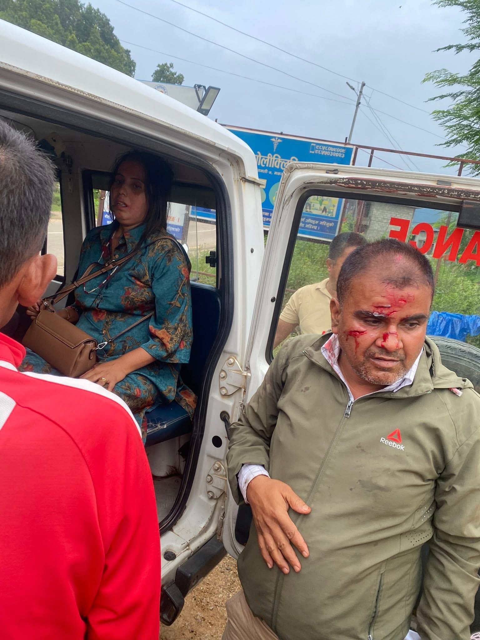 ईभी गाडी र मोटरसाइकल ठोक्किँदा १४ जना घाइते