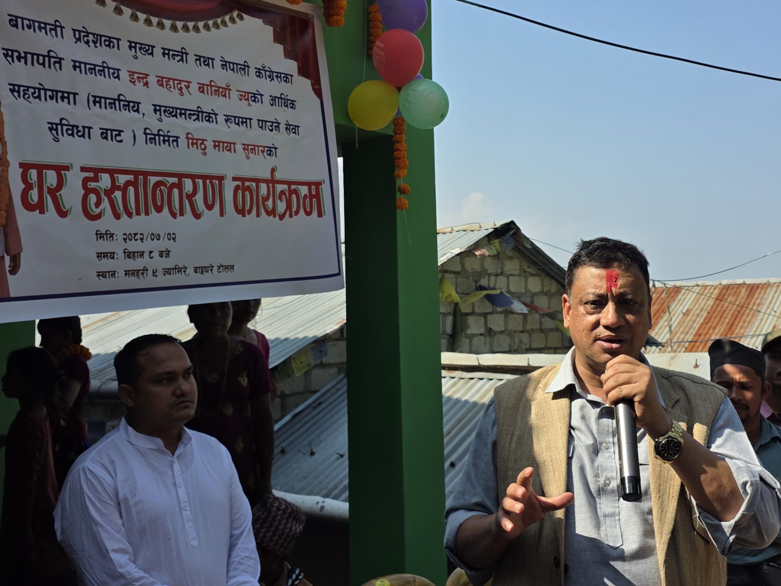 कार्यक्रममा मुख्यमन्त्रीका सल्लाहकार तथा नेपाली कांग्रेस मकवानपुर सभापति बुद्ध लामा, मनहरी गाउँपालिकाका अध्यक्ष रञ्जन कालाखेती, वडा नं. ९ का वडाध्यक्ष राजकुमार श्रेष्ठ, कांग्रेस मनहरी गाउँपालिकाका सभापति प्रकाश बर्तौला लगायतले मन्तव्य राखेका थिए । मुख्यमन्त्री बानियाले आफ्नो निर्वाचन क्षेत्रका अन्य दुई विपन्न परिवारका लागि पनि घर निर्माण गराइरहनुभएको छ । राक्सिराङ र कैलाश गाउँपालिकामा निर्माण भइरहेको घर तिहारपछि हस्तान्तरण गर्ने तयारी गरिएको छ ।