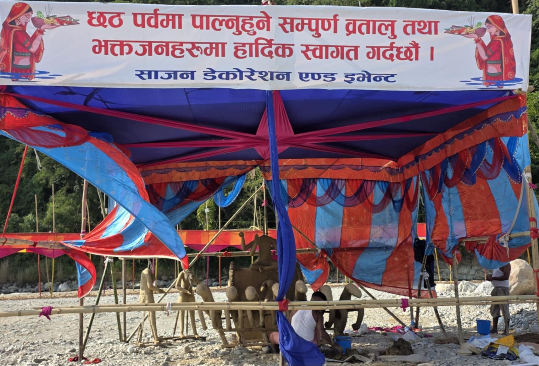 साथै २५ वटा व्यवसायिक स्टलहरूले समेत निर्माण गरिएको छ । राप्ती खोलाको कटान गरी सम्याइएको बगरमा पण्डाल निर्माणका साथै, पूजास्थलको मध्य भागमा छठी माताको मूर्ति निर्माण कार्य पनि अन्तिम चरणमा रहेको छ ।